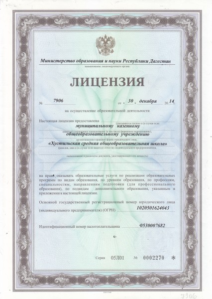 Полное наименование образовательной организации* Муниципальное казенное общеобразовательное учреждение "Хустильская СОШ "