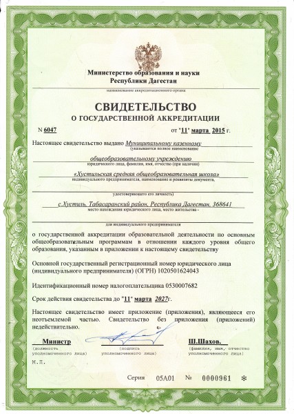 Адрес местонахождения образовательной организации* 368641 ,Республика Дагестан, Табасаранский район,с. Хустиль ул центральная №60